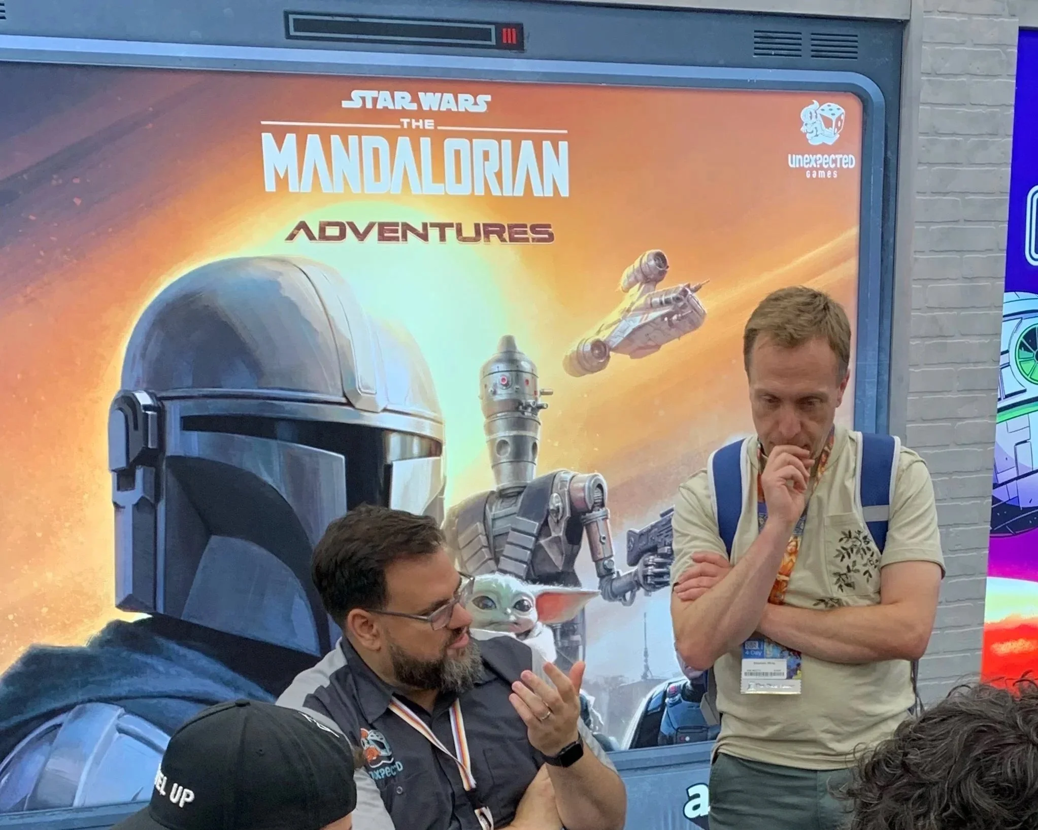 Conventions offer a great opportunity to show off and brag about our game designs and the artists that bring our games to life. I work with them to coordinate times and create graphics to have them meet with our players and sign their works, the games, prints, and anything in between.